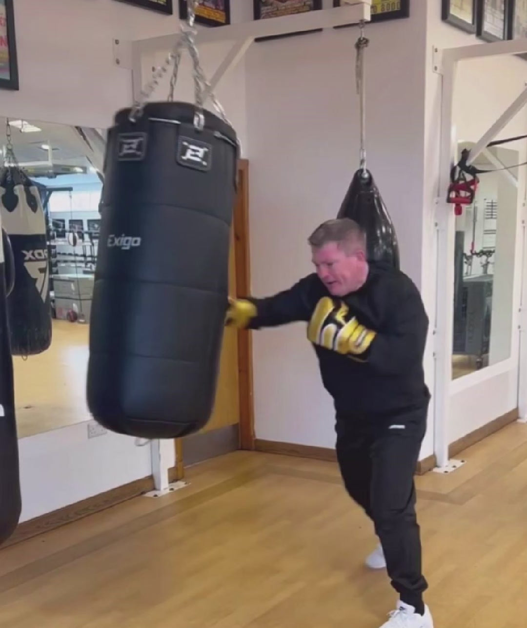 BlackThe Exigo Elite 3ft 3’’ (1m) XL Heavy Punch Bag is perfect for a heavy hitter made from tough buffalo leather with a quilted foam interior and steel ring to help the bag retain its shape over time. This bag is pre-filled weighing approximately 40kg with the top fully covered so the zip is not exposed but is still easily accessible. Features double stitched and multi-bolted straps and is supplied with an elite chain set for hanging the bag. Suitable for home or commercial use.